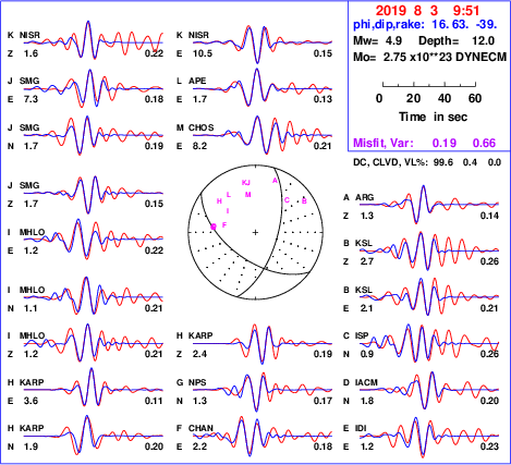 | strike | dip | rake | seismic moment | |