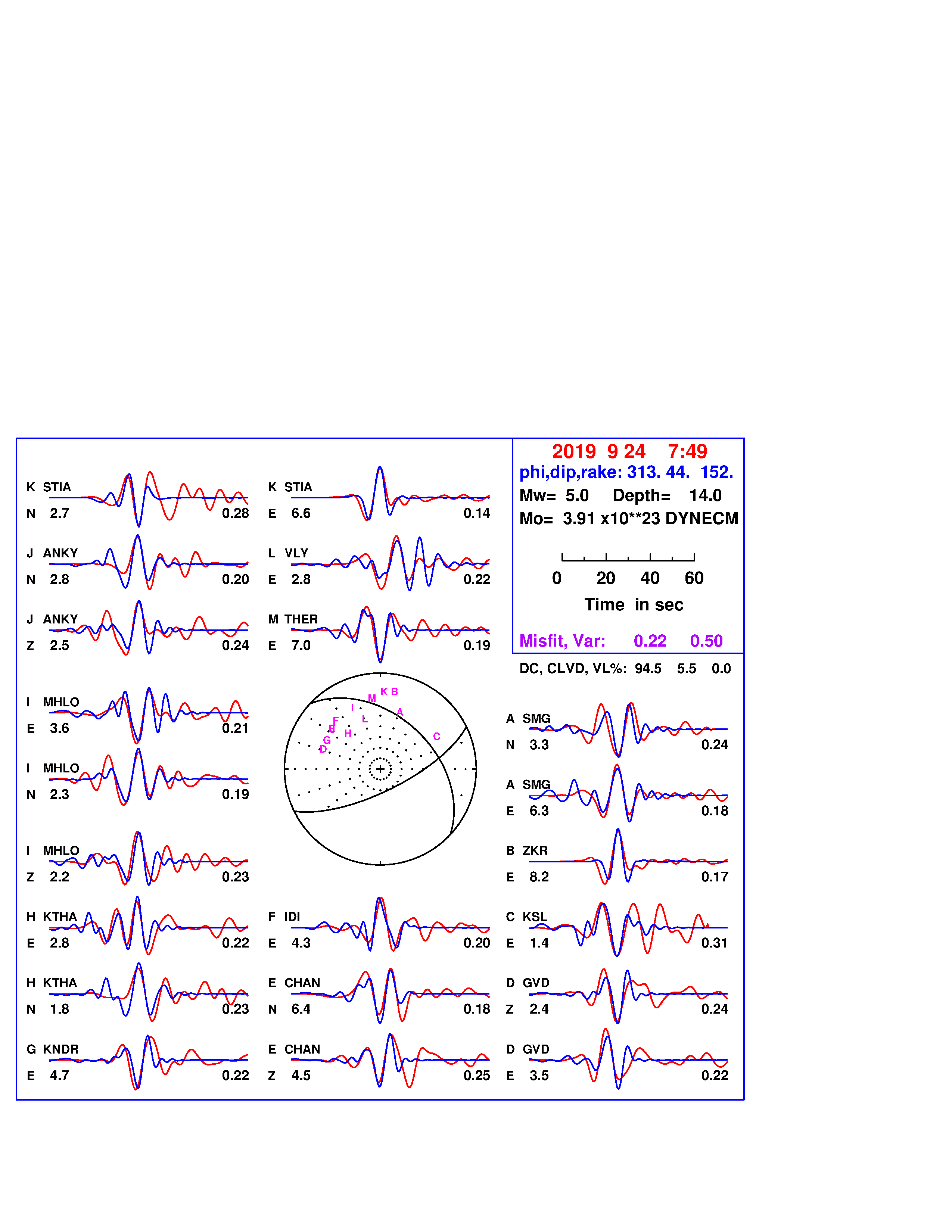 | strike | dip | rake | seismic moment | |