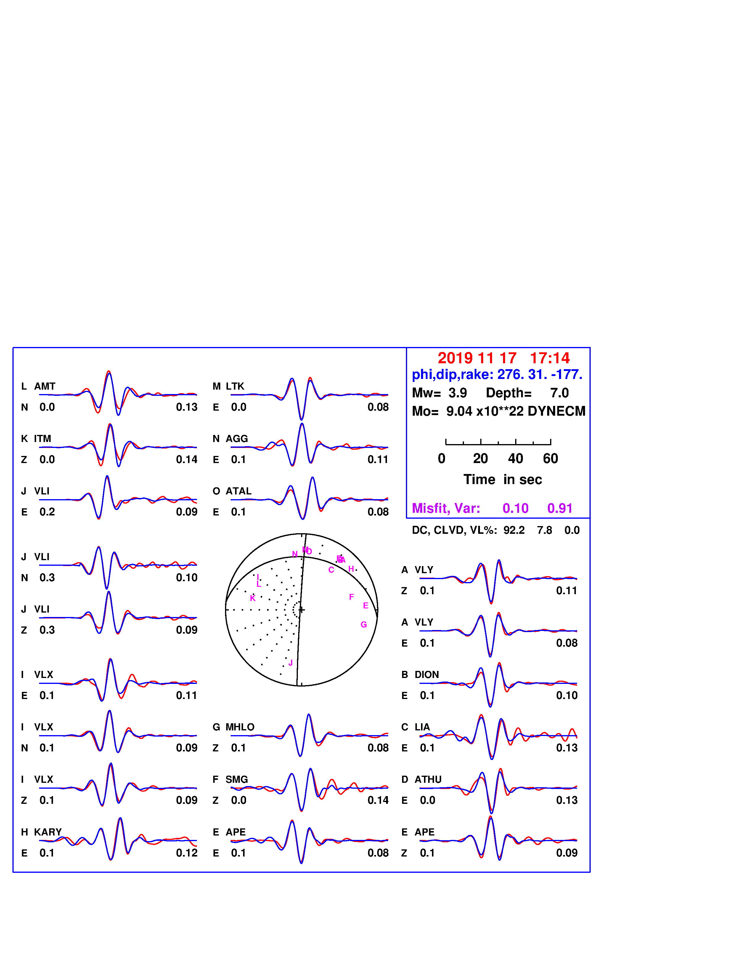 | strike | dip | rake | seismic moment | |