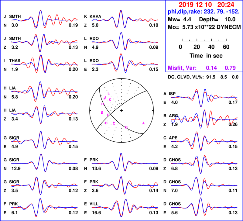 | strike | dip | rake | seismic moment | |