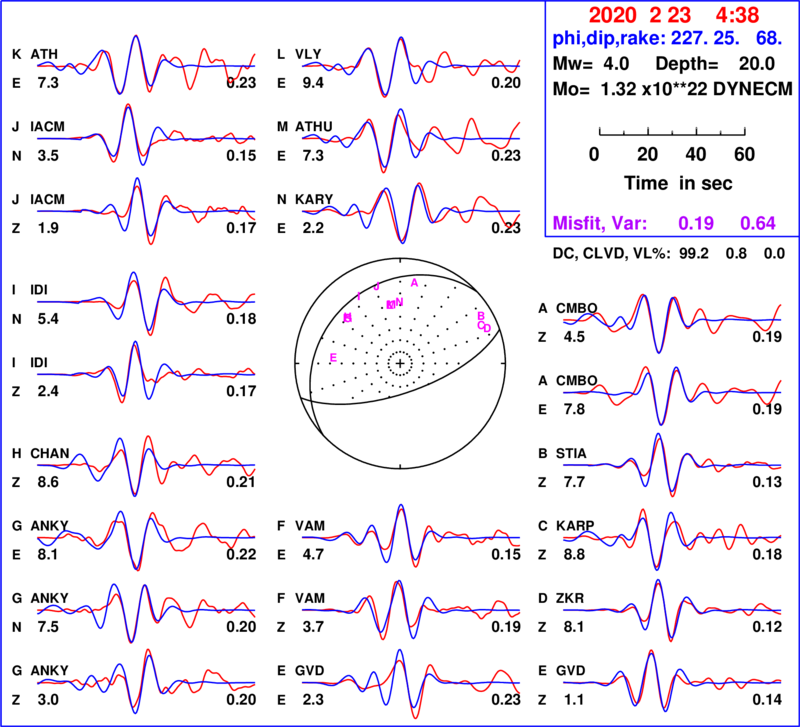 | strike | dip | rake | seismic moment | |