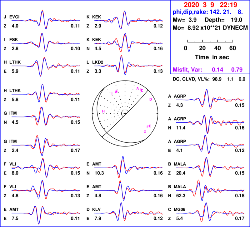 | strike | dip | rake | seismic moment | |