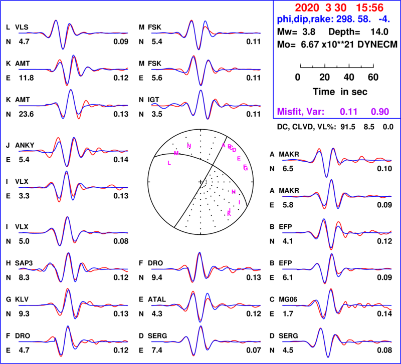 | strike | dip | rake | seismic moment | |
