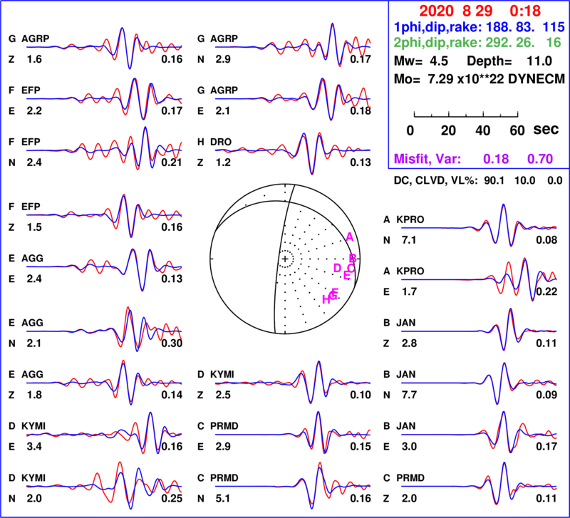 | strike | dip | rake | seismic moment | |