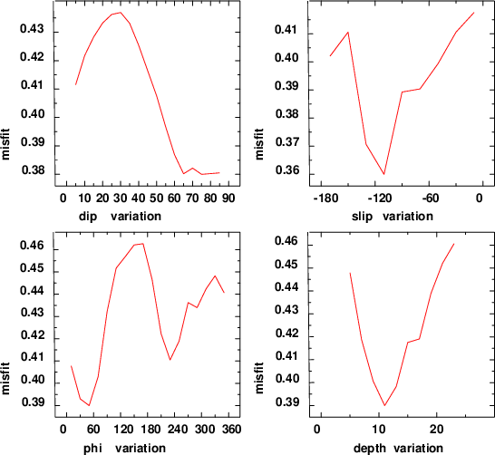 | strike | dip | rake | seismic moment | |