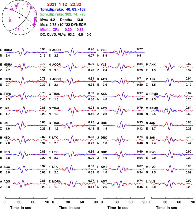 | strike | dip | rake | seismic moment | |