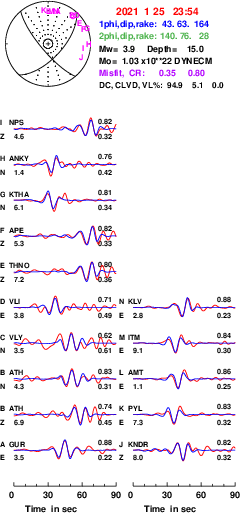 | strike | dip | rake | seismic moment | |