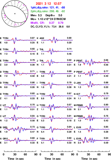 | strike | dip | rake | seismic moment | |