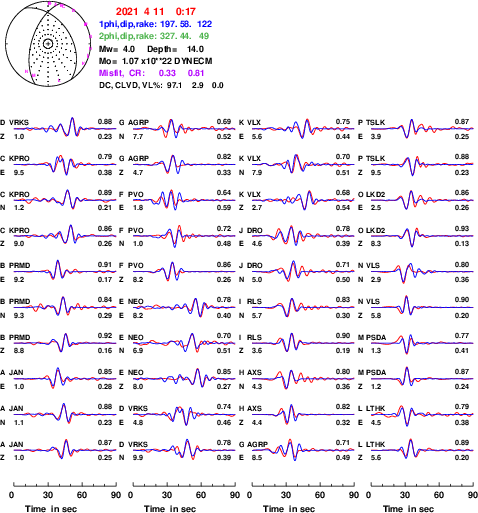 | strike | dip | rake | seismic moment | |