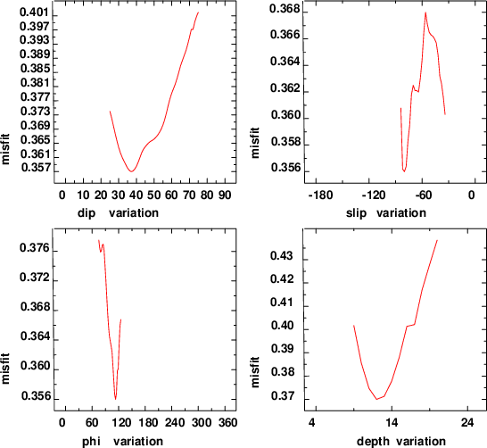 | strike | dip | rake | seismic moment | |