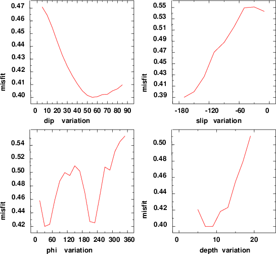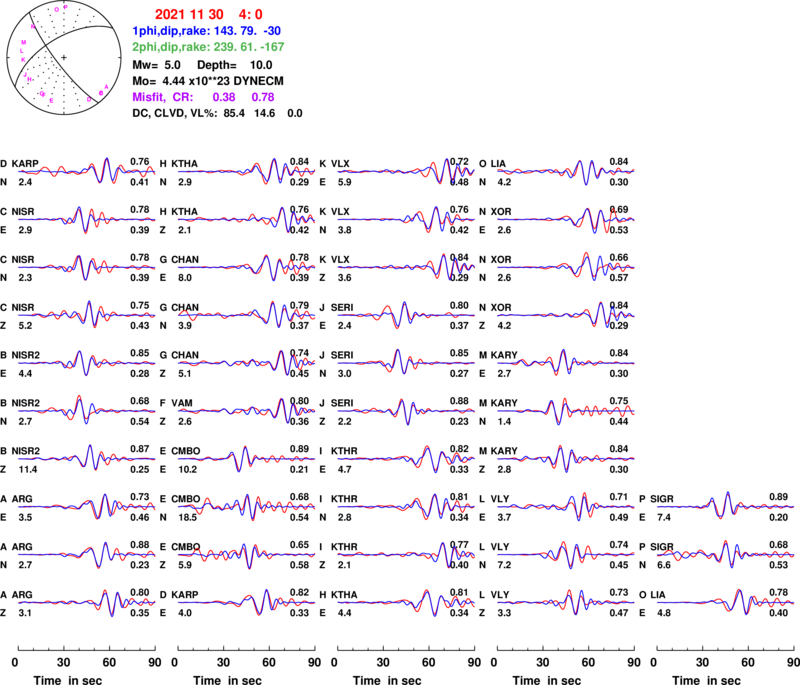 | strike | dip | rake | seismic moment | |