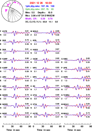 | strike | dip | rake | seismic moment | |