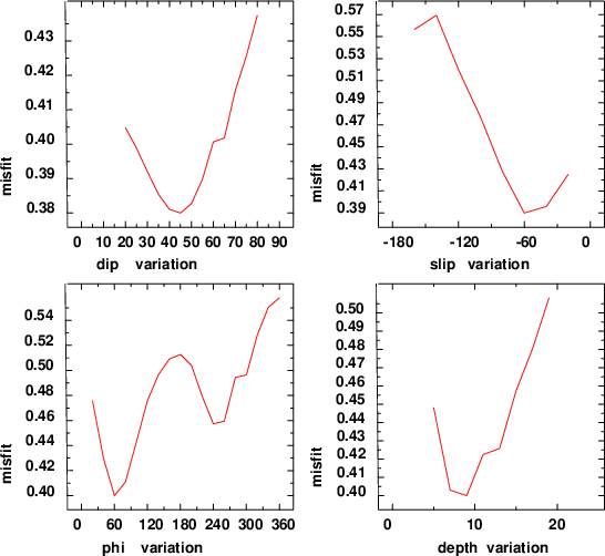 | strike | dip | rake | seismic moment | |