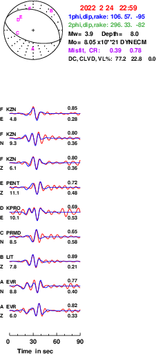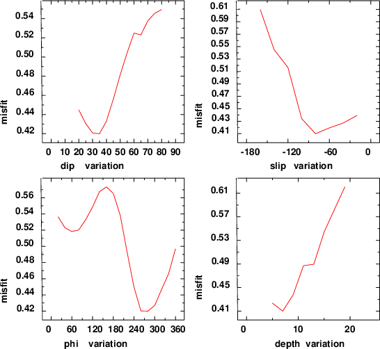 | strike | dip | rake | seismic moment | |