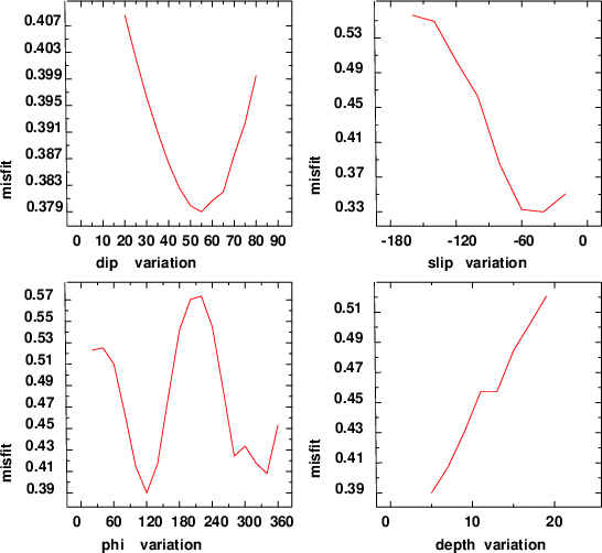 | strike | dip | rake | seismic moment | |