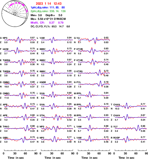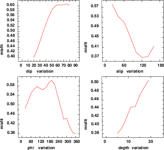 | strike | dip | rake | seismic moment | |