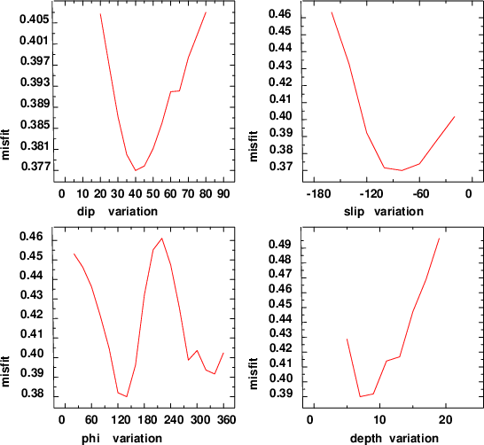 | strike | dip | rake | seismic moment | |