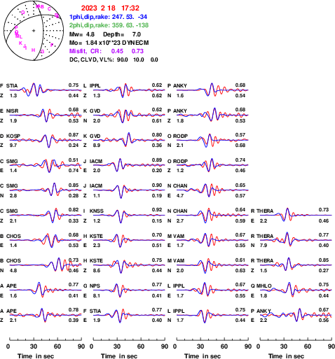 | strike | dip | rake | seismic moment | |