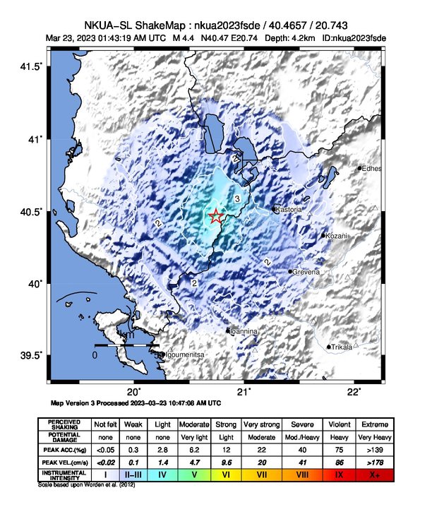 Επίκεντρο 44.6 χμ Δ της Καστοριάς