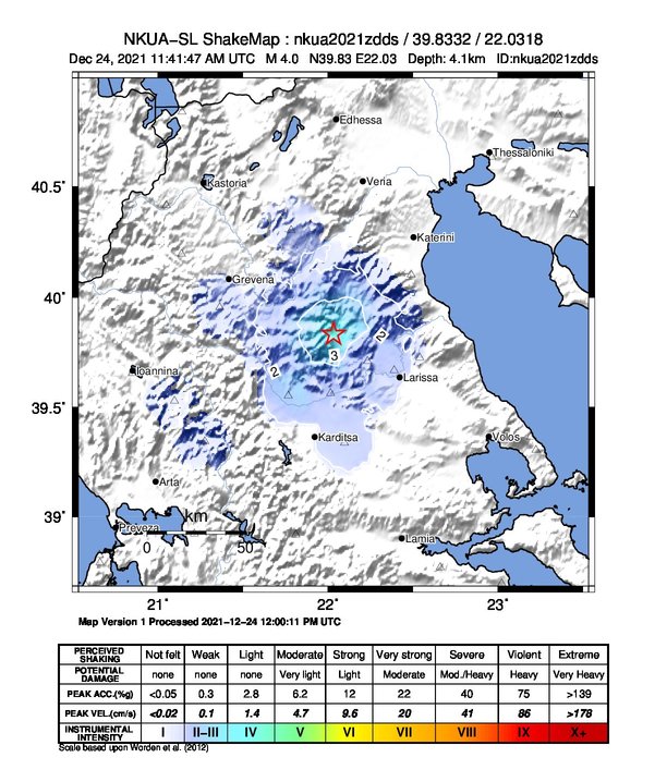 Depth 4 km +/- 2 km