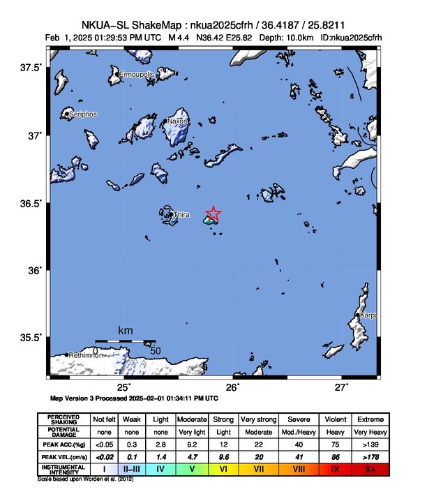 Location 29.0 km NE of Thira