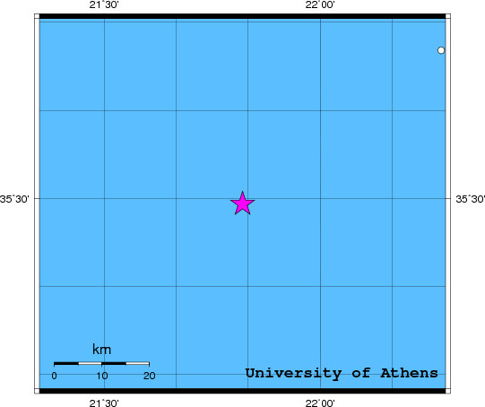 Central Mediterranean Sea mB=4.4 2010/07/20 03:10:24 35.74 N 21.77 E 10 km